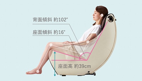 背中から、お尻、もも裏までの広範囲をマッサージするL字フレームを採用しました。
