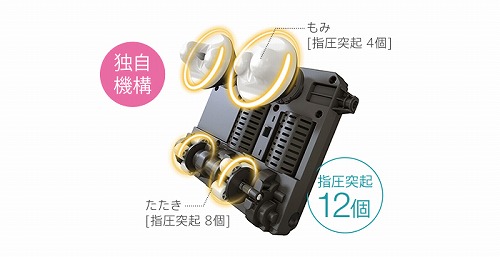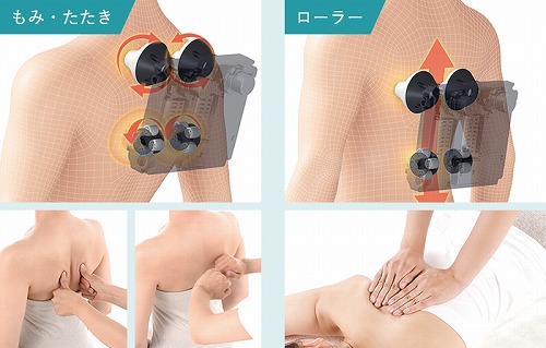 広範囲にもみほぐす横回転式とたたくようにほぐす縦回転式の2種類のもみ玉を採用した「マルチムーブメカ」を搭載。
