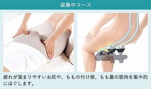 お尻やももの付け根、もも裏の筋肉を集中的にほぐす「座集中コース」や、