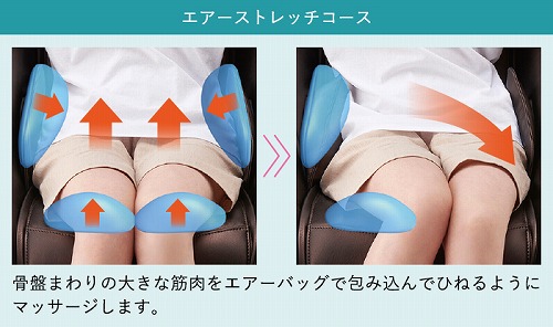 骨盤まわりをエアーバッグで包み込んでひねるようにマッサージする「エアーストレッチコース」は、