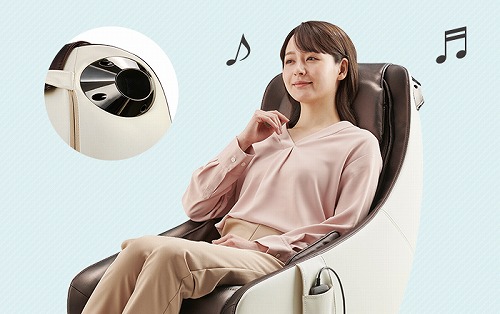 お手持ちのスマートフォンやパソコンなどと接続しマッサージをしながらお好みの音楽を聴くことができます。