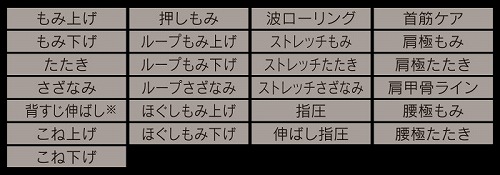 ※もみ技マッサージ中に機能設定で【もみ技】停止【マッサージ範囲】全身/部分にすると背すじ伸ばし動作を行います。