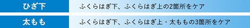 ふくらはぎはもみ板でしぼりあげるようにマッサージ。ふくらはぎ裏は突起付きローラーで刺激し太ももは挟み込むようにほぐします。