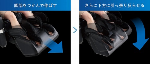 全身をストレッチマッサージする「ストレッチコース」や個別の「フットストレッチ/ダブルフットストレッチ」機能を搭載しています。